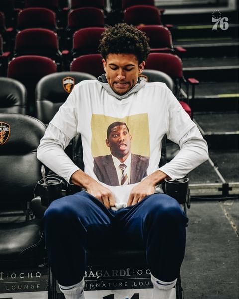 早些时候,76人官方为恩比德送上生日祝福,如今他们又晒出了队友们为恩比德庆生的特殊方式。大家都穿上了一件定制上衣,上衣正面是恩比德的头像,也是他著名的表情包之一。哈登、马克西、塞布尔都穿着这件上衣,露出微笑。