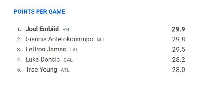 此前,采访詹姆斯多年的名记文霍斯特曾表示,考虑到湖人的现状,成为得分王是詹姆斯目前唯一的动力。这里的得分王既包括本赛季的得分王,也包括历史得分王。历史得分王迟早是詹姆斯的,但本赛季的得分王竞争还是很激烈的。目前最新的数据显示,得分榜排名第一的是恩比德,字母哥和詹姆斯分列第二和第三。