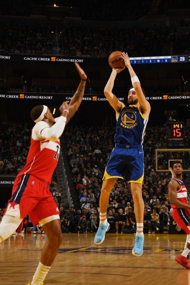 赛季至今,库里共为勇士出战64场比赛,场均得到25.5分5.2篮板6.3助攻,三分球率达到42.1%。虽然库里的多项数据都有所下滑,但是他的整体效率却并没有下滑多少,尤其是在他超越雷-阿伦成为NBA历史三分王之后,库里更是受到了更多的认可。也正是在库里的带领下,勇士才能够在本赛季一直保持在西部前三的位置。