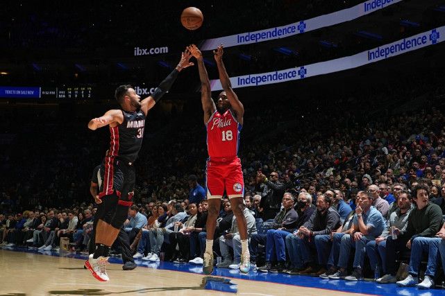 两队在第三节始终紧咬着比分,尤其是费城这边,并没有因为手感下降而被热火拉开比分,反而利用转换进攻继续对热火制造着威胁。阿德巴约的篮下强攻得手,帮助热火领先费城1分。巴特勒快攻拿下2分,科尔克马兹三分命中扳平比分。随着米尔顿的中投命中,费城在第三节结束时领先热火4分。