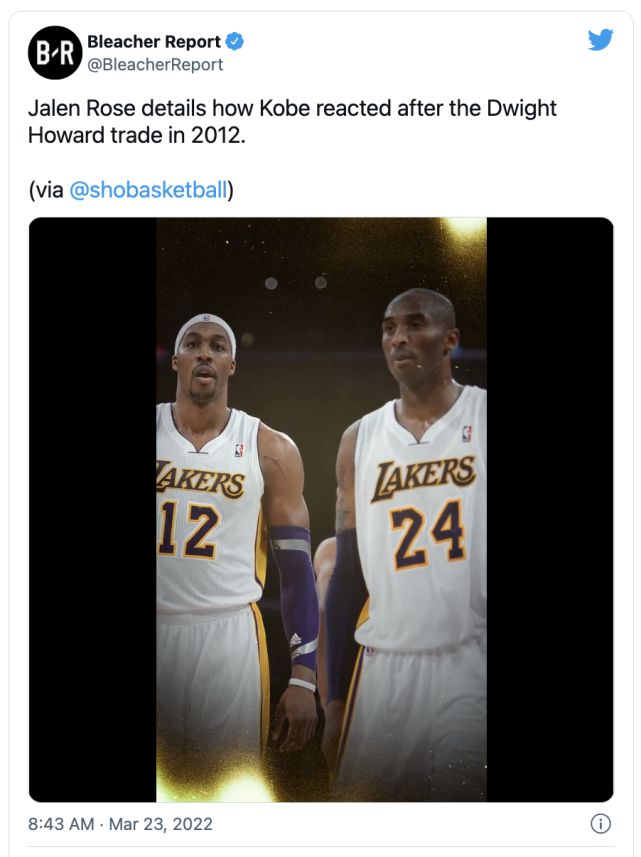 最后需要谈及的是,前NBA球员贾伦-罗斯在一档节目中谈及科比-布莱恩特在得知湖人推动涉及德怀特-霍华德交易时候的反应已经引起热议。