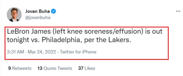 上一场对阵老东家骑士,詹姆斯轰下38分,拿到三双数据,还隔扣了前队友乐福。不过,他的膝盖依然有伤,自从1月份以来,詹姆斯就一直因同样的问题出现在湖人的伤病名单上。