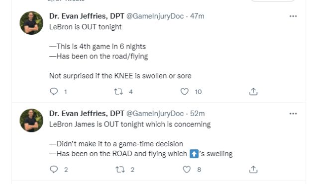 医学专家Evan Jeffries表示,詹姆斯的左膝肿胀问题已经持续8周,湖人从未官方宣布具体诊断结果。这场对76人的比赛是6天里的第4战,詹姆斯需要休息。Evan透露了两大担忧:第一,湖人没有让它变成赛前决定;第二,接连客场和飞行因素,让詹姆斯的膝盖有可能出现肿胀或者酸痛。