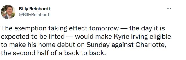 此前,美媒报道称,篮网一度失去乐观的情绪,欧文本人也显得非常沮丧,没想到在欧文30岁生日这一天,事件出现了惊人的反转!纽约市长和卫生官员合作制定了一项计划,让不接种疫苗的欧文以及其他类似的职业体育运动员都获得了主场出战的资格。