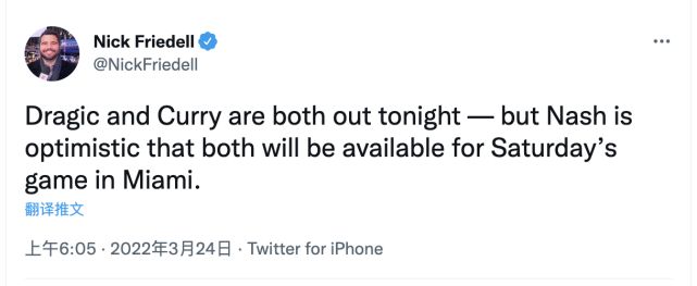 最后需要谈及的是,德拉季奇和塞斯-库里都不会出战对阵灰熊的比赛: