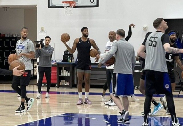 “他已没有任何疼痛感,现在就是要恢复体能,”谈到乔治时,快船主帅泰伦-卢说道。训练结束时,大家聚在一起喊口号,卢还特意拉过乔治,嘱咐两句。