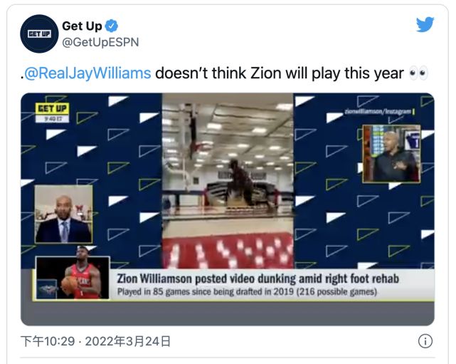 “我仍然认为鹈鹕能在没有锡安的情况下击败湖人,我们还在期待湖人能在季后赛阶段突然开窍?我知道勒布朗-詹姆斯能有足够好状态,但我不知道其他球员能否做到这点并且击败鹈鹕。”