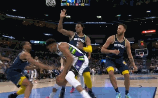 比赛首节,字母哥连送两记助攻,帮助洛佩斯接连命中三分。不过他的个人进攻就没那么顺利了。空接不中,补篮还不中,开场4分钟,字母哥才用一次2+1打破僵局。灰熊经常对字母哥进行包夹,而且灰熊不缺强壮的内线,亚当斯、小杰克逊,包括替补上场的蒂尔曼,都对字母哥疯狂施压。他再次连续内线进攻不中,还被逼成一次24秒违例。首节快结束时,字母哥终于扣篮得分,他第一节得到7分,9投仅3中。雄鹿28-32落后灰熊4分。