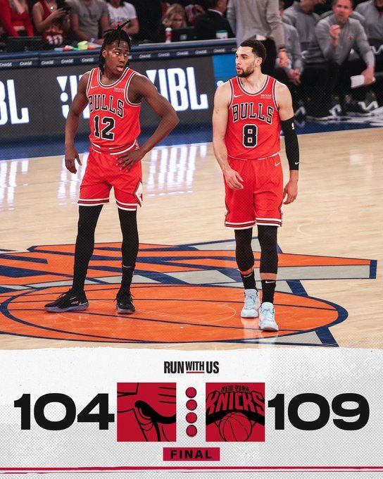 这场比赛德玛尔-德罗赞要负全责,终场前46秒德罗赞错失了一个反超的中距离,若这个中投命中公牛将反超,随后伯克斯三分命中尼克斯再度拉开到4分。终场前18秒德罗赞又献上致命失误,科比-怀特执行犯规战术兰德尔两罚全中拉开到6分,公牛大势已去。