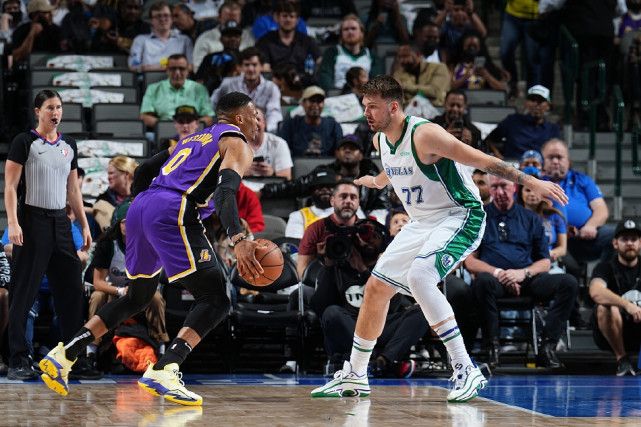 缺少了詹姆斯,让湖人在开场之后便遭遇了进攻麻烦,不仅投篮频繁打铁,在防守端更是让独行侠接连打出高质量的防守反击。首节开始不久,独行侠便打了湖人一个8-0的进攻高潮。直到首节打至3分12秒,威少的上篮才帮助湖人打破得分僵局。不过威少一人并没有能够解决好湖人的进攻,而东契奇更是借助反击连续命中三分球。