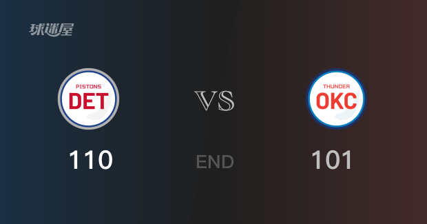 全场比赛结束,最终活塞以110-101击败雷霆,成为获胜方。活塞球员杰克逊砍下全队最高26分,外加2篮板1抢断、海斯26分7篮板8助攻5抢断2盖帽、利弗斯17分11篮板3助攻1抢断1盖帽,他们是活塞队里得分最高的三名球员。