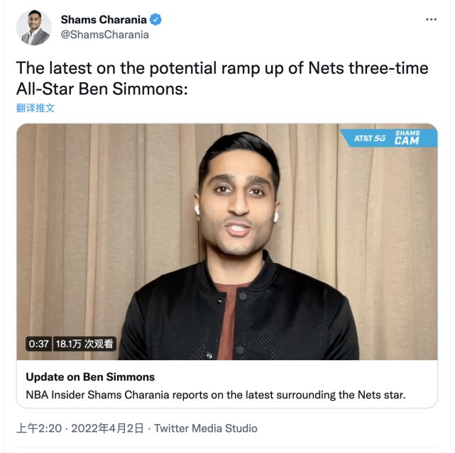 目前距离2021-22赛季常规赛结束还有一周多的时间,而本-西蒙斯在被76人送到篮网之后还没有为球队出战任何一场比赛,当然本赛季至今西蒙斯都还没有迎来自己的赛季首秀。