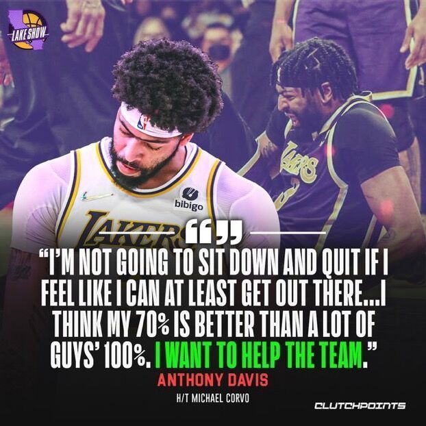 首节比赛戴维斯打了8分钟拿下4分4篮板1助攻1盖帽,但他在防守端的移动脚步明显不佳,他表示自己就算只要70%的状态也会登场,因为0%的他也比很多100%的球员要好。
