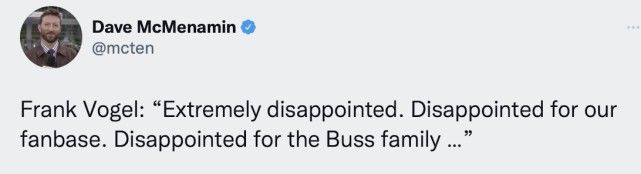 沃格尔在赛后的采访中透露着沮丧,他谈到球队无缘附加赛:“非常沮丧,我想对球迷与巴斯家族说我感到非常失望与沮丧。我们希望发挥自身的作用,为湖人篮球带来胜利,但我们失败了。”