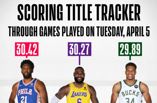 北京时间4月6日,当詹姆斯因伤缺席与太阳的比赛,字母哥面对公牛只打24分钟仅得到18分,没有争夺得分王的欲望,让恩比德成为冲击得分王的最有力人选。恩比德面对步行者狂轰45分,恩比德借助最近两场狂轰89分,让他场均得分提升到30.42分,正式超越詹姆斯0.15分升至得分榜首位,有望冲击生涯首座得分王荣誉。