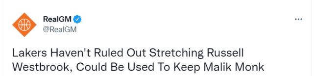 此前报道称,延伸条款裁掉威少,可以让威少的薪金平摊到未来三年的薪金空间内,每年占据1500万美元左右。此举可以让湖人的薪金离开奢侈税区,更容易留下即将成为自由球员的蒙克。