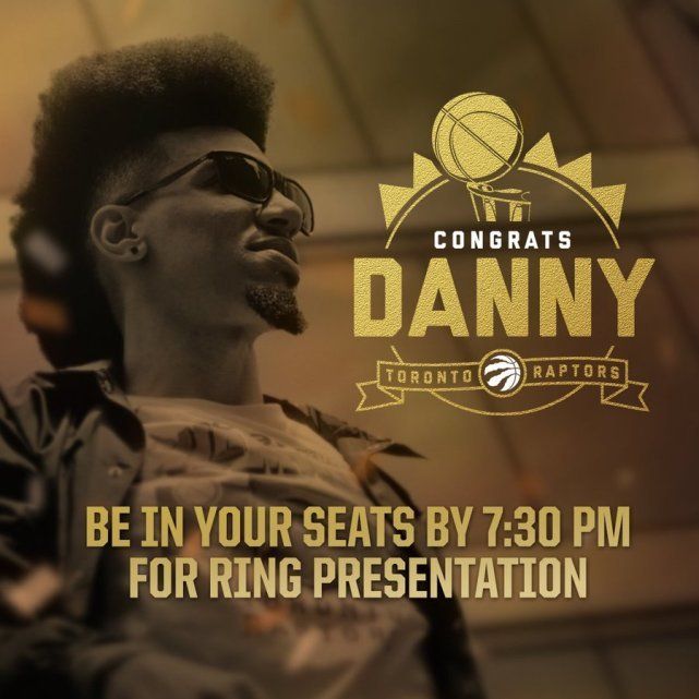 由于今日塞布尔无法出战,格林也进入了首发阵容。这是他生涯第707次首发, 在这样一个领取戒指的夜晚,首发出战也显得格外有意义。猛龙官推也晒出了格林领取戒指的海报,写道:“祝贺丹尼!请在7点30分坐好期待领取戒指的仪式!”