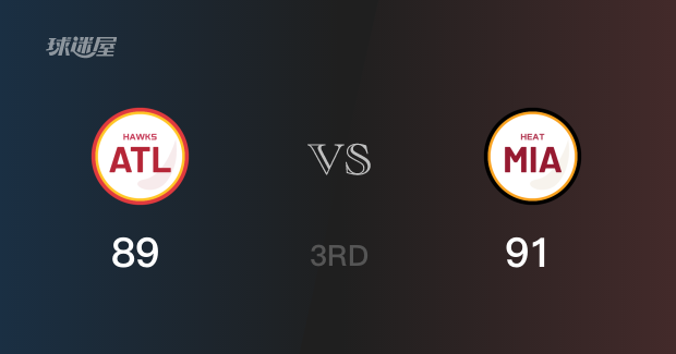 三节结束,热火以91-89领先老鹰2分,末节再战。