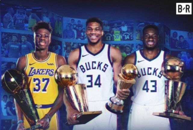 字母哥:效力雄鹿,2021年NBA总冠军与总决赛MVP、2次常规赛MVP、6次入选全明星、3次入选最佳阵容一队、历史75大巨星