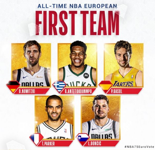 NBA英国官方给出的NBA历史欧洲球员最佳阵容五人组,其评选投票开始于2021年11月份,至今已经有半年时间,由欧洲球迷,外加40多家欧洲媒体、评论员、和篮球界名人等组成的专家小组选出,其中球迷投票占据一半,专家组占据一半。