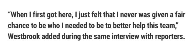 “当我第一次来到这里时,我只是觉得自己从来没有得到公平的机会并且成为能更好地帮助这支球队的那个人”威少说道。