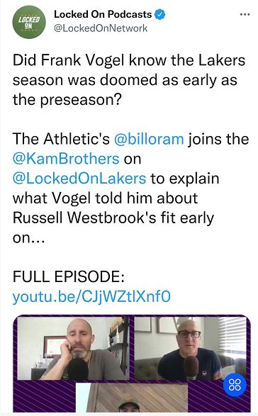北京时间4月18日,尽管湖人的赛季已经结束,但有关湖人的话题依然没有结束。如今湖人随队记者Bill Oram在播客节目中,揭秘了湖人的一些内幕,他透露湖人管理层在交易引进威少时,根本没有和教练组沟通,而沃格尔在季前赛阶段就认为威少与詹眉不搭。