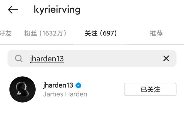 哈登离开篮网时,曾有报道称他是对欧文不能全职打比赛感到不满,但哈登离开球队后,欧文明确表态,他和哈登仍是朋友。从社媒关注来看,哈登和欧文也一直处在互相关注的状态,现在也没有改变,倒是杜兰特选择取关哈登,似乎也在暗示自己和哈登的关系已经破裂。