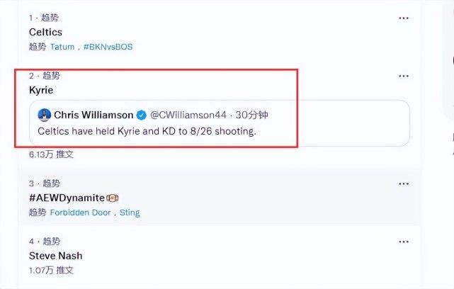 篮网双星状态低迷在赛后引发了热议,冲上了热搜榜第二的位置,而绿军逆转赢下比赛在热搜榜第一。篮网主帅纳什也引发热议,热搜榜第四。