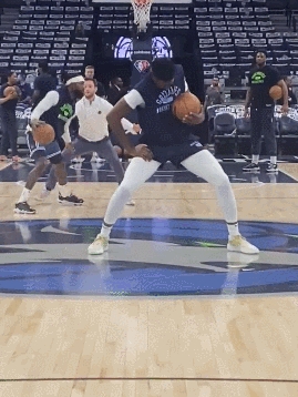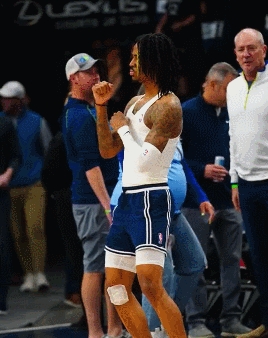 赛前灰熊核心贾-莫兰特在场边舞蹈热身,他的右膝贴着一个胶带看上去有些开放性伤口。