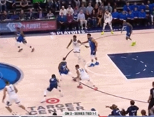 下半场两队主力回归,拉塞尔抢断安德森一条龙暴扣得手,开场不到5分钟森林狼打出17-4的高潮再度拉开到20分。