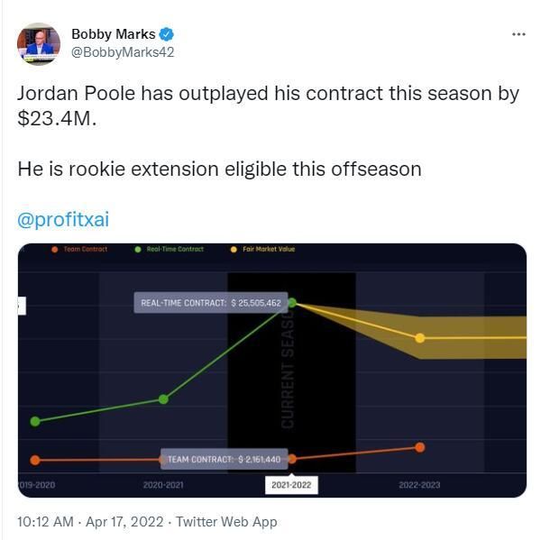 ESPN薪资结构专家鲍比-马克斯分析,今夏普尔的均薪大概率要打到2550万美元,最次也能打到2340万美元,他本赛季才216万美元。