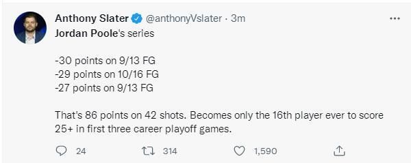 普尔此役也创造了多项纪录:他完成个人职业生涯季后赛连续三场25+;