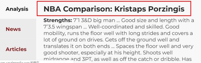 值得一提的是知名选秀网站NBADraft为他列出的模板并不是杜兰特,而是波尔津吉斯。你们认为霍姆格伦会成为状元吗?哪支球队最适合他呢?