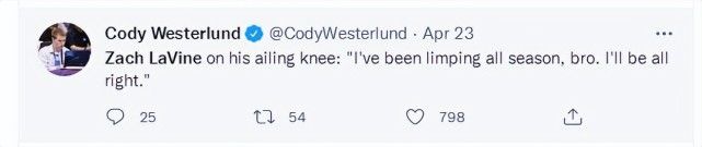 赛后接受采访拉文还谈到了他的膝盖,他表示:“我整个赛季都一瘸一拐,兄弟,我会没事的。”换言之拉文的膝盖依旧存在伤病,本赛季他因为膝伤曾缺席了多场常规赛。