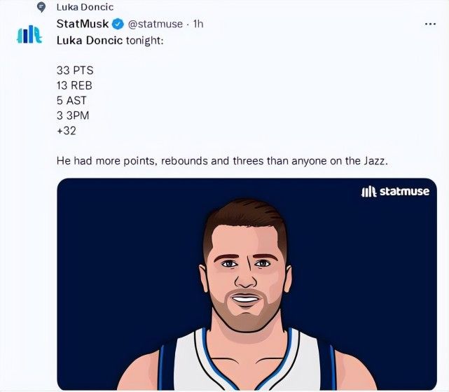 1.东契奇此役得分、篮板、三分球命中数都比爵士任何一个球员更高。