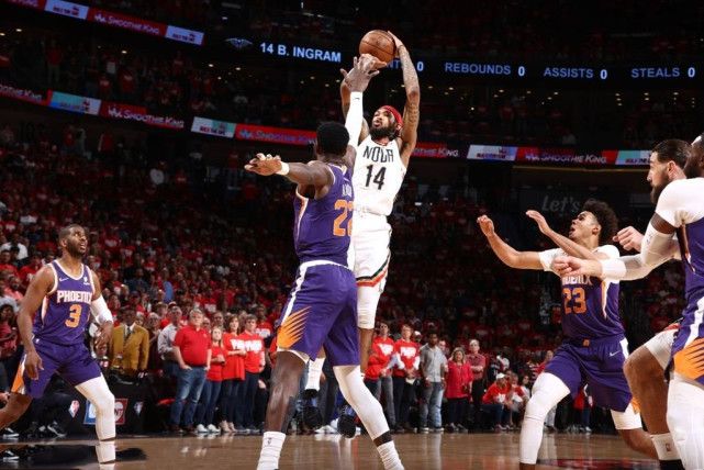 通过附加赛才勉强晋级季后赛的鹈鹕,面对常规赛战绩第一的太阳并没有丝毫的胆怯,而是打出了属于自己风格的篮球。尤其是主将英格拉姆,更是成为了球队攻克强敌的领军者。自从系列赛第二场开始,英格拉姆便连续3场比赛砍下30+的得分,成为鹈鹕队史上第一位在季后赛做到这一点的球员。