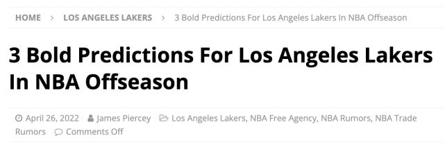 尽管如此,湖人还是有机会在今年休赛期有所举动。美媒詹姆斯-皮尔西对湖人今年休赛期做出以下3个大胆预测: