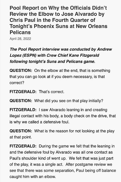 不过当时的执法裁判Kane Fitzgera并未对保罗给予任何吹罚,他赛后给出的解释是因为阿尔瓦拉多防守犯规在先,而保罗是因为阿尔瓦拉多的防守,导致失去身体平衡,才不慎肘到阿尔瓦拉多的面部。