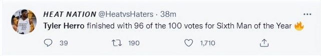 希罗拿下这个最佳第六人也成为热火队史首位拿下这个奖项的球员。