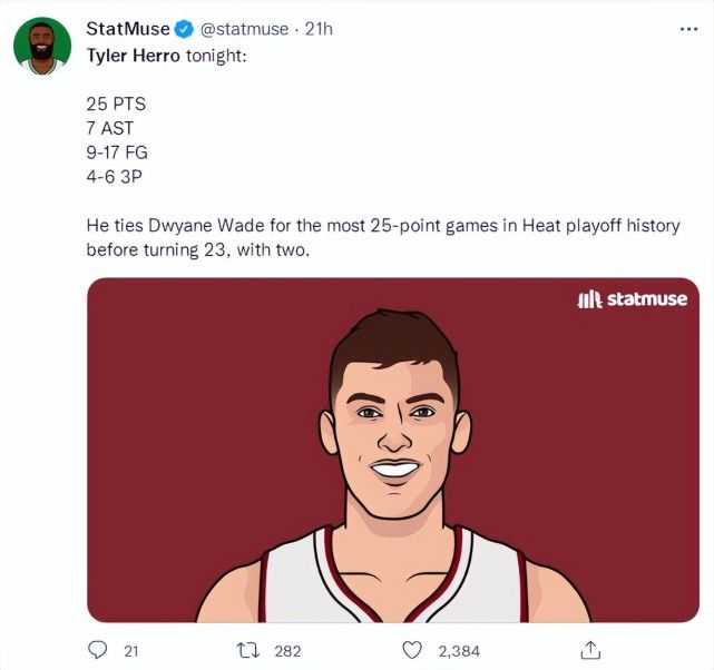 他在23岁之前已经追平韦德队史最多的25+,他未来有希望成为一位球星。