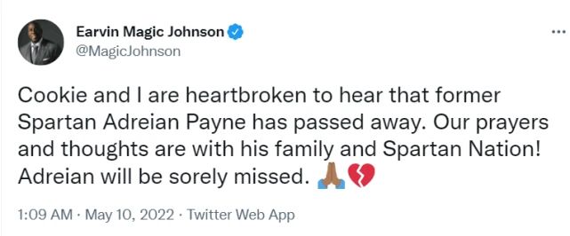 森林狼官方写道:“我们对于阿德里安-佩恩的去世深表遗憾,在此,我们向他的家人以及朋友致以最深切的哀悼。”NBA官方也写道:“NBA和发展联盟大家庭对于阿德里安-佩恩的去世深表哀悼。我们向他爱的人们致以最深切的哀悼。