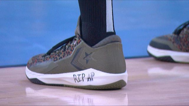追梦在球鞋上写了“RIP AP”,悼念此前去世的大学队友阿德里安-佩恩。