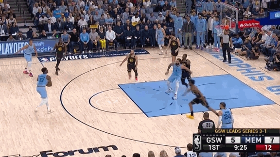 面对勇士的防守,灰熊投中18个三分,创季后赛队史纪录。