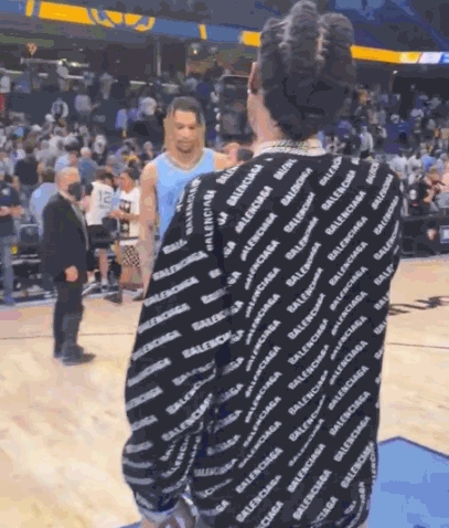 G5战胜勇士,让场边观战的莫兰特非常开心。他挨个去拍接受采访的队友,还现场喊麦:“灰熊7战晋级!灰熊7战晋级!”不过,作为当家球星,他没上场灰熊能够大胜,也是某种形式的尴尬,甚至有灰熊球迷到莫兰特社媒评论区请求他别打G6了。
