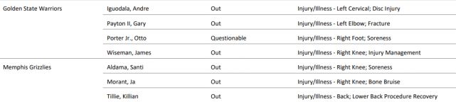 勇士灰熊6人缺阵G6!莫兰特继续休战随队飞赴湾区 波特出战成疑