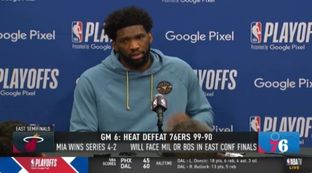 恩比德赛后接受采访,他再次强调自己的目标是赢得总冠军,而未能达成夺冠的目标,在哪一轮出局都是一样的结果,也表示“我们还是不够强硬,热火在这个系列赛都在消耗我和哈登。”。恩比德也谈到了自己的伤病问题,他因为面部眼眶骨折缺席系列赛前两场,还遭遇手指伤势困扰。