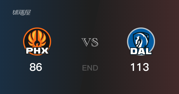 全场比赛,独行侠球员东契奇全场砍下33分;太阳球员艾顿全场砍下21分。全场结束,独行侠以113-86战胜太阳。