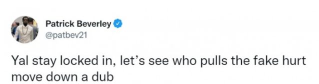 贝弗利与太阳核心保罗有恩怨,他在比赛上半场时刻,就已经吐槽发声嘲笑保罗与太阳,根本等不到比赛结束,毕竟比赛早就已经打花了。贝弗利当时表示,“大家都别走,继续关注比赛!让我们看看,到底谁会在赛后假装自己受伤了。”