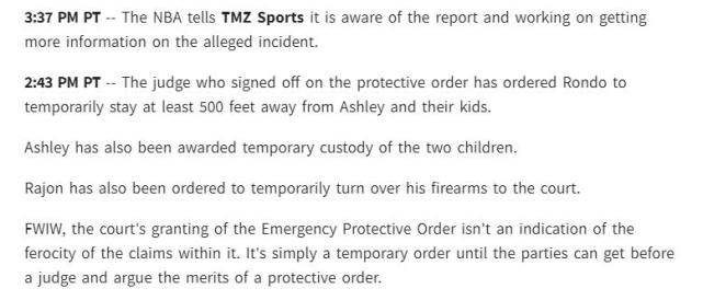 北京时间5月17日,美媒TMZ跟进报道了骑士后卫朗多和前妻阿什利的冲突事件。朗多持枪对前妻死亡威胁,而阿什利向法院申请了紧急保护令,联盟官方也表态已经注意到朗多事件,正在收集更多信息。