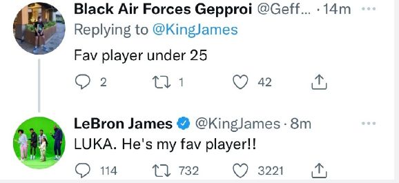 詹姆斯在休赛期开启疯狂围观模式,他对于季后赛的诸多比赛进行围观点评。詹姆斯今日与网友进行互动,他表示在25岁的球员当中,最喜欢的球员是独行侠核心东契奇。